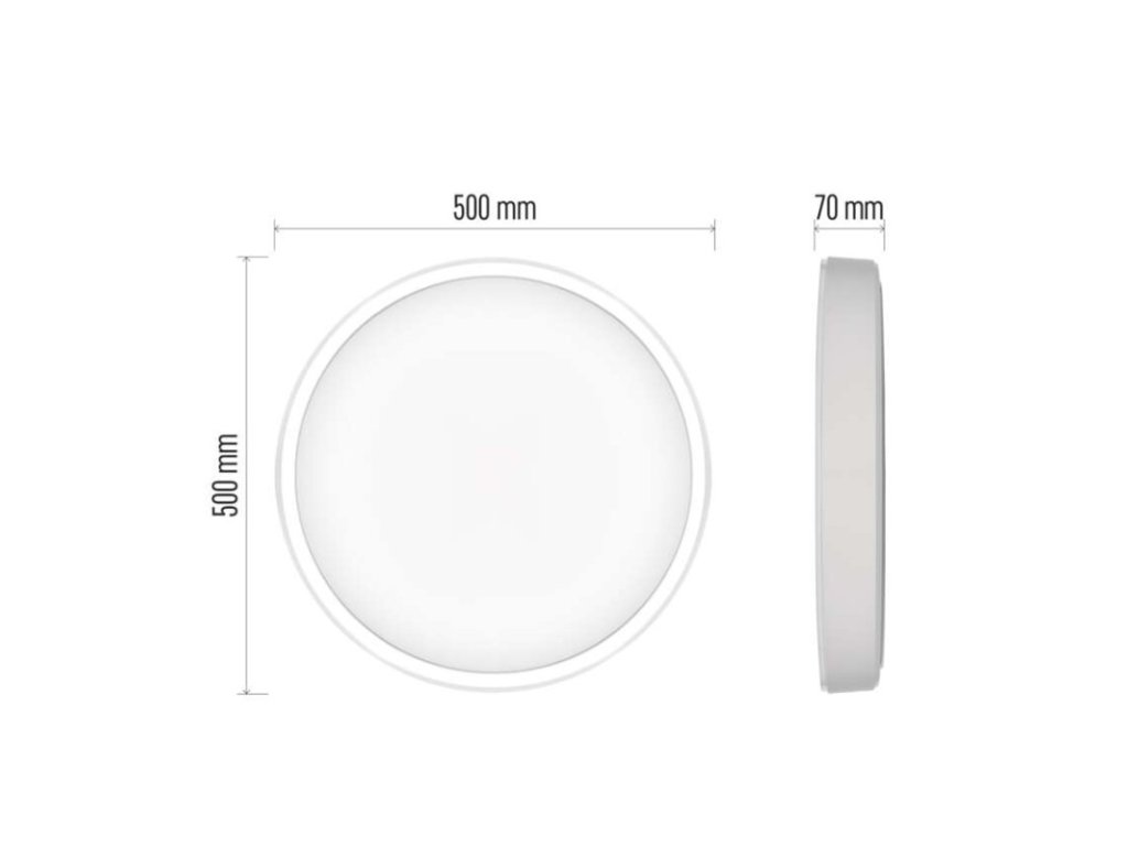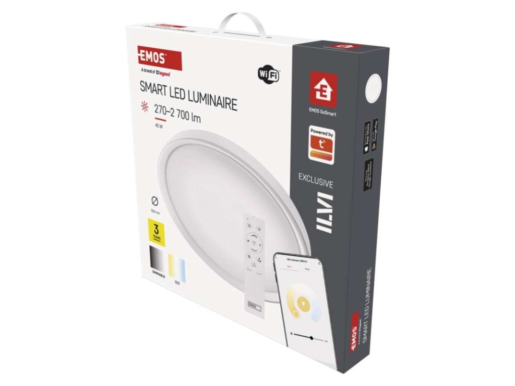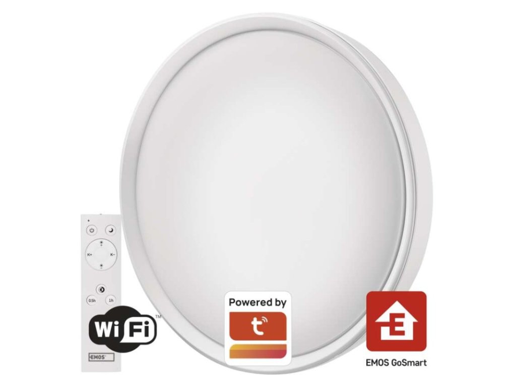 ďalšie funkcie: –|diaľkový ovládač: áno (2× AAA, R03)|do chodby a na schodisko: áno|do dielne a garáže: nie|do kancelárie: áno|do kuchyne: áno|do kúpeľne: nie|do obývačky, spálne a detskej izby: áno|dosah senzora: nemá senzor|do záhrady a na balkón: nie|farba svetla: teplá biela–studená biela|farba tela: biela|flicker-free: áno|frekvencia: 50/60 Hz|index podania farieb (CRI): Ra > 80|jazyky aplikácie: EN, CZ, SK, PL, DE, HU, SI, FR, + 60 ďalších jazykov|kategória: EXCLUSIVE|kompatibilita: EMOS GoSmart, TUYA, LIDL, Smartlife, otvorený systém|krytie: IP20|materiál difúzora: plast (PMMA)|materiál LGP: neuvádza sa|materiál tela: oceľový plech|montážny otvor: neuvádza sa|možnosť stmievania: áno|náhrada za žiarovku: 160 W|napätie: 220–240 V|notifikácie do mobilnej aplikácie: áno|obsah balenia: –|ovládanie hlasovými asistentmi: áno|podporované OS: Android, iOS|pohybový senzor: neuvádza sa|predajný obal: 1 ks, krabica|prenosová frekvencia: 2,4 GHz WIFI (IEEE802.11b/g/n)|príkon: 45 W|protokol: Wi-Fi|prúd: 450 mA|rada: GoSmart|rozmer: priemer 500 × 70 mm|spôsob montáže: prisadené|svetelná účinnosť: 60 lm/W|svetelný tok: 2 700 lm|teplota chromatičnosti: 2 700–6 500 K|tvar: kruh|typ difúzora: mliečny|typ svietidla: klasické svietidlo|účinník: > 0,9|UGR<: neuvádza sa|uhol vyžarovania: 115°|umiestnenie: stropné/nástenné|výstupný prúd zo zdroja: 175 mA|záručná doba: 3 roky|zdroj svetla: LED|životnosť: 30 000 hodínDodatočné parametre