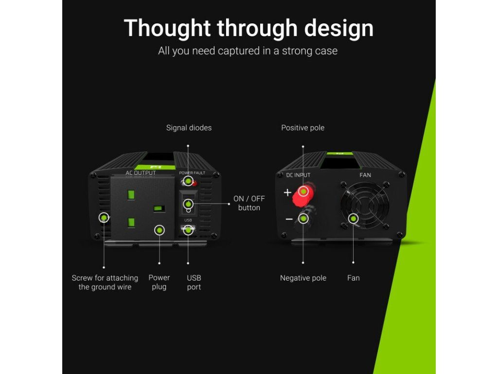 INV02UK Green Cell Power Inverter 24V to 230V 300W/600W Modified sine wave UK PLUG