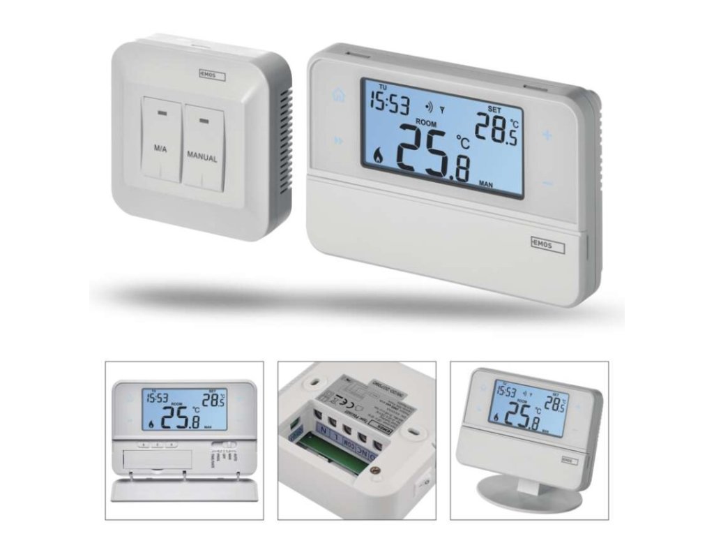 dĺžka kapilárneho čidla: neuvádza sa|dosah vo voľnom priestore: 80 m|druh regulácie: vykurovací a chladiaci systém|farba: biela|funkcia ON/OFF: áno|funkcia prázdniny: áno|funkcia Set-back: nie|kalibrácia teploty: áno|meranie teploty: 0 °C až 40 °C, rozlíšenie 0,1 °C|možnosť prepojenia s ďalšími detektormi: neuvádza sa|napájanie: neuvádza sa|napájanie brány: neuvádza sa|napájanie prijímača: 230 V AC|napájanie vysielača: 2× 1,5 V AA (súčasťou balenia)|nastavenie teploty: 5 ° C až 35 ° C, po 0,5 ° C|nastaviteľný rozptyl teploty: 0,2 °C až 2 °C, po 0,1 °C|ochrana proti zamrznutiu: áno|počet programov: 1 užívateľsky nastaviteľný program alebo užívateľsky nastaviteľná teplota (6 × za deň)|podsvietený displej: áno|pracovná frekvencia: 868 MHz|predajný obal: 1 ks, krabička|protokol: –|rozmer: neuvádza sa|rozmer brány: neuvádza sa|rozmer prijímača: 26 × 86 × 86 mm|rozmer vysielača: 26 × 126 × 84 mm|spínaná záťaž: 10 A odporovo, 4 A induktívne|spínanie: 230 V AC alebo beznapäťové|súčasť balenia: neuvádza sa|typ nastavenia teploty: 6 teplotných zmien denne|typ ovládania: programovateľný elektronický izbový termostat|typ termostatu: bezdrôtový s OpenTherm komunikáciouDodatočné parametre