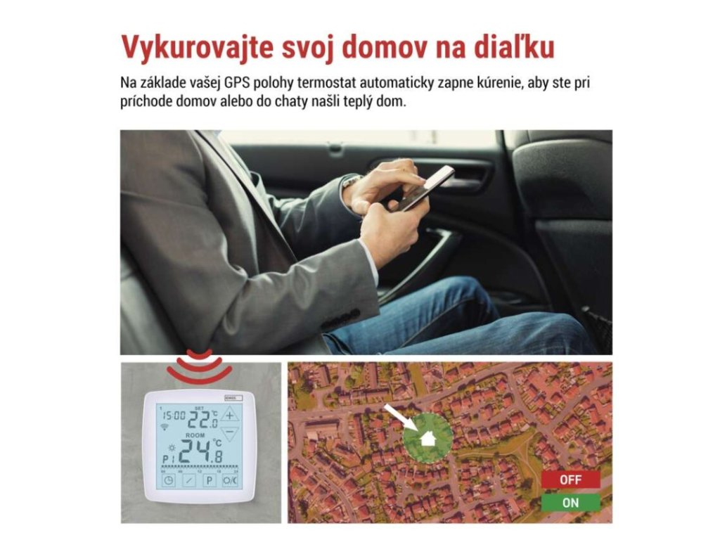 | typ ovládania: | programovateľný elektronický izbový termostat, možnosť ovládania cez mobil (iOS, Android) |