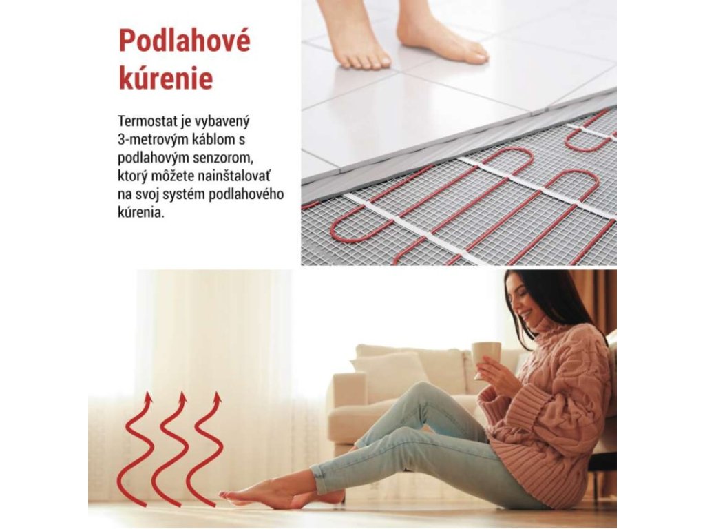 | súčasť balenia: | termostat, podlahové čidlo 3 m, Ø 8 mm |