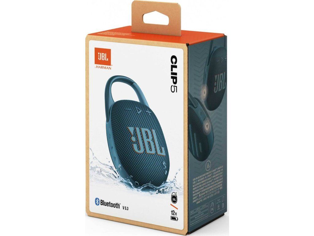 JBL Clip 5 obsahuje recyklovaný plast a tkaninu pre mriežku reproduktora. Je taktiež zabalený v papieri s certifikátom FSC potlačeným sójovým atramentom.