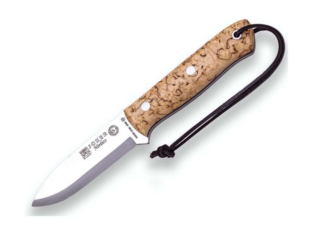 JOKER CL115 NÓRDICO vonkajší nôž 10 cm, drevo kučeravej brezy, kožené puzdro