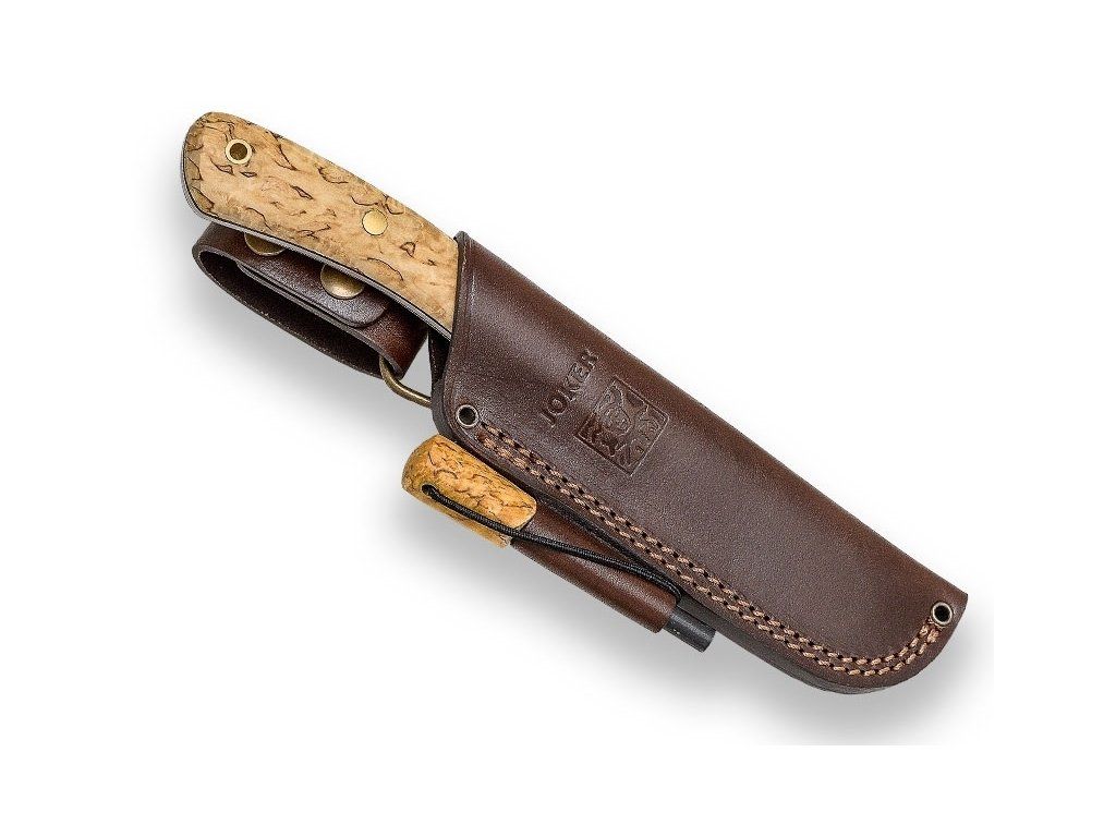 JOKER CL132-P NESSMUK outdoorový nôž 11 cm, drevo kučeravej brezy, kožené puzdro, kresadlo