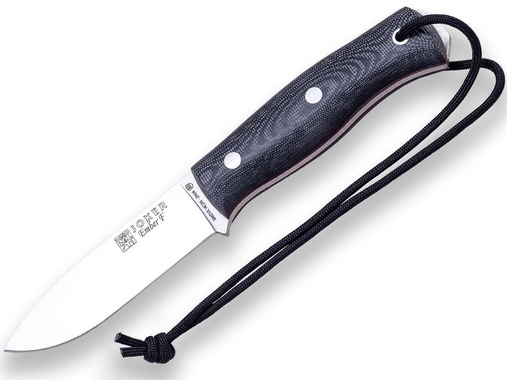 JOKER CM123 EMBER FLAT outdoorový nôž 10,5 cm, čierna, Micarta, kožené puzdro, paracord