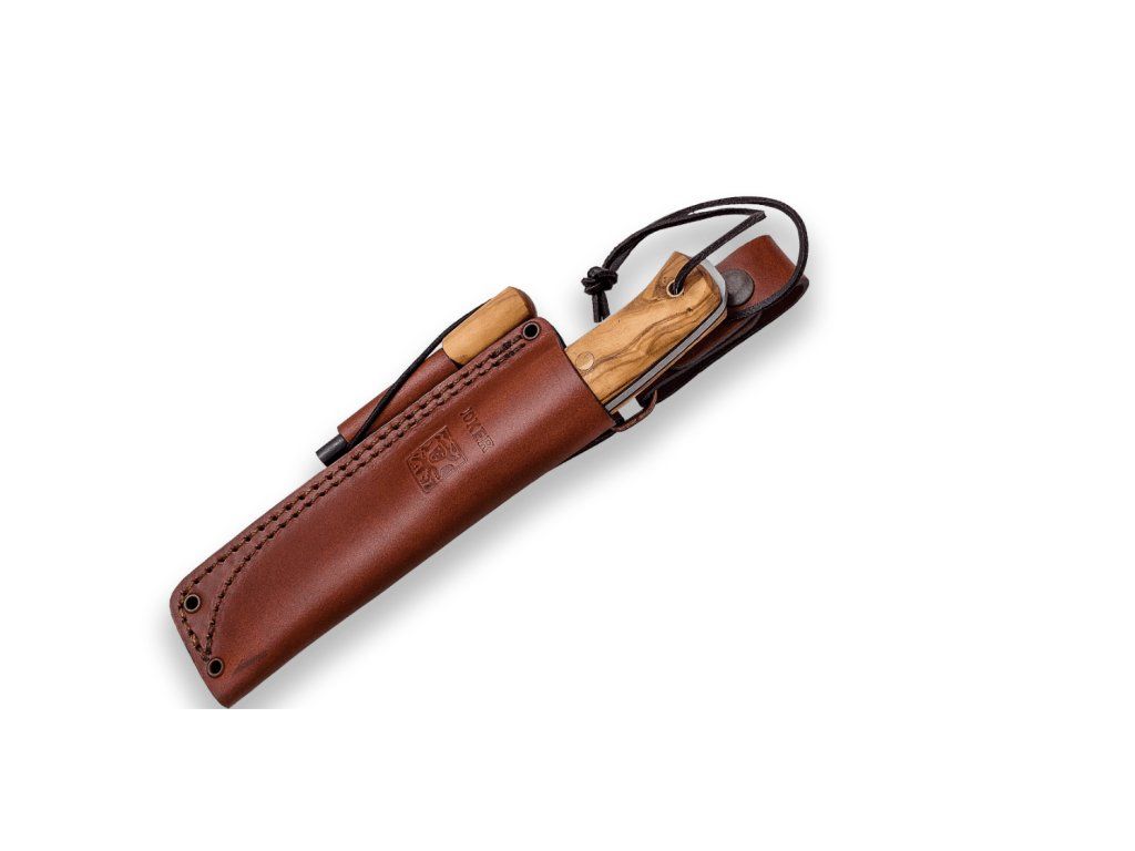 JOKER CO123-P Ember vonkajší nôž 10,5 cm, olivové drevo, kožené puzdro, kresadlo