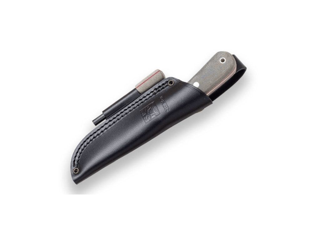 Dodáva sa s koženým puzdrom a kresadlom.
