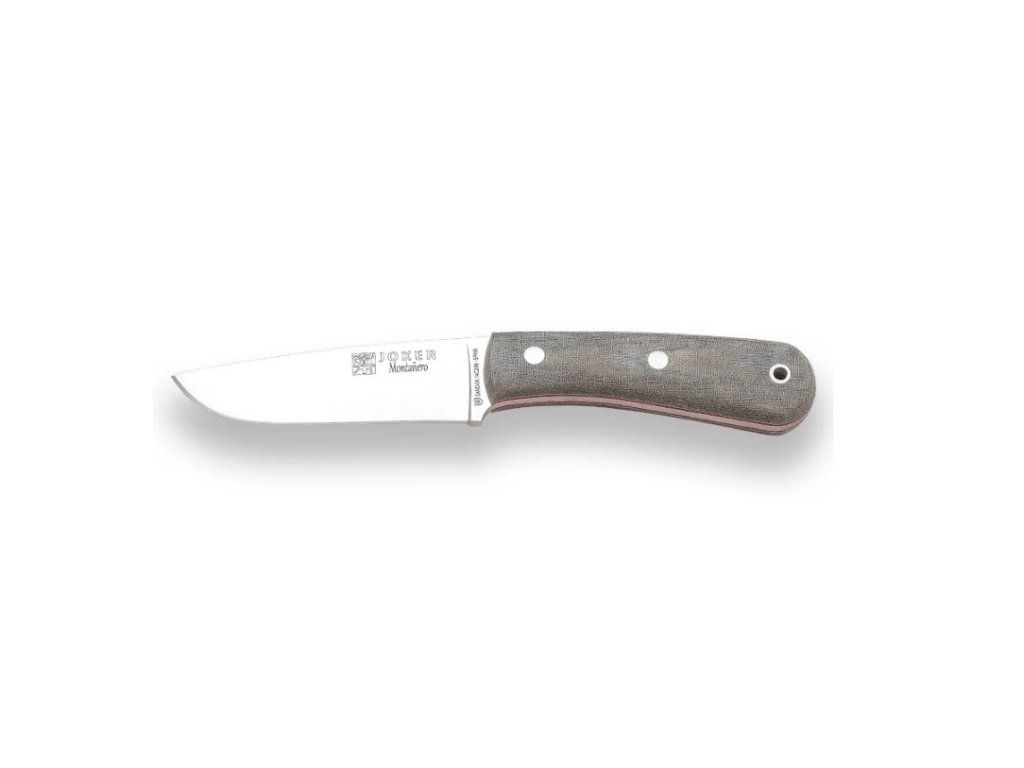 Stredne veľký nôž Joker CV134-P Monetnero s plochým výbrusom, vhodný pre vonkajšie aktivity ako kemping, turistika, bushcraft či lov.