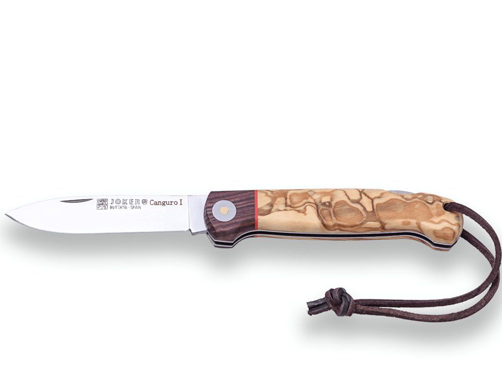JOKER NO129 CANGURO vreckový lovecký nôž 8,5 cm, olivové a ružové drevo, šnúrka
