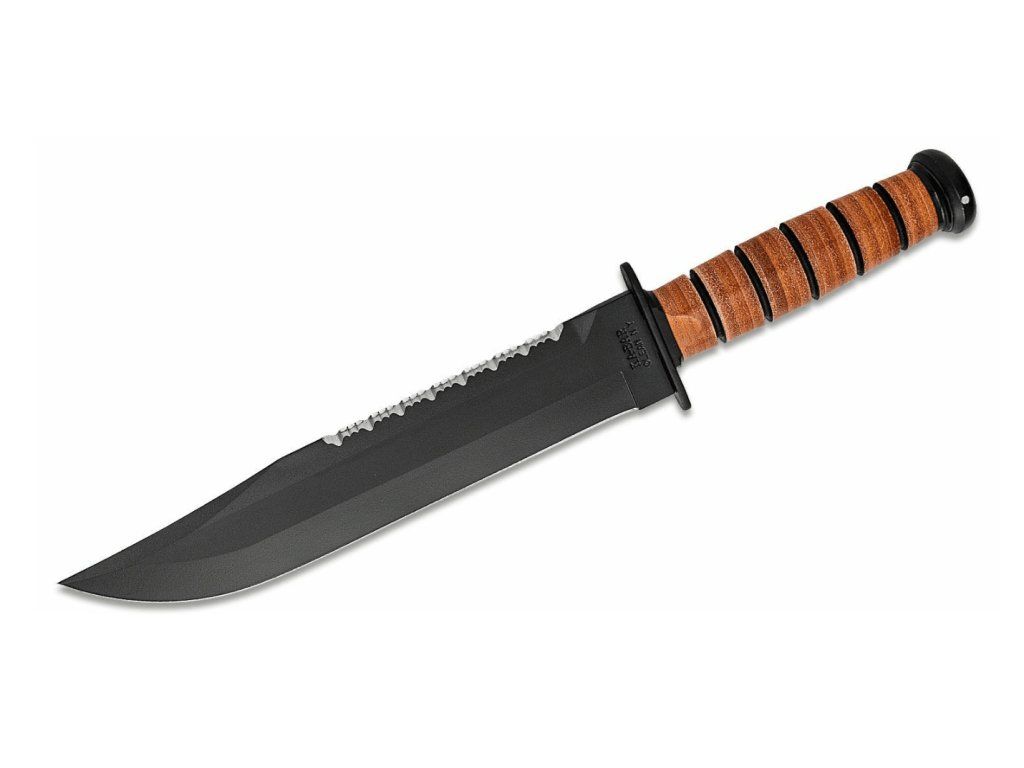 Má pevnú čepeľ s hladkou hranou z uhlíkovej ocele 1095 s čiernou povrchovou úpravou. Na zadnej strane čepele sa nachádza čiastočné zúbkovanie. Rukoväť je vyrobená zo stlačených a brúsených kožených krúžkov. S obojstrannou záštitou na ochranu ruky pred poranením.