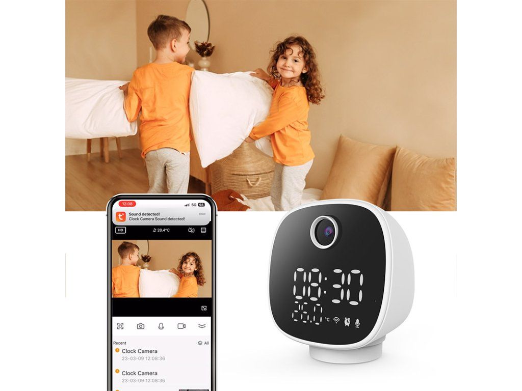 Tato kamera je perfektní doplněk do domu. Má prostě vše. Kamera je otočná, má rozlišení 3 Mpx, displej s hodinami a teplotou, noční světlo a je otočná. Kameru 1D81 můžete využít i jako dětskou chůvičku. Kamera má noční světlo, umožňuje přehrání několika melodií – ukolébavek. Senzor teploty bude v tomto případě také užitečný, protože na displeji zobrazí aktuální teplotu v místnosti. Displej se všemi údaji má regulovatelný jas, nebo je možné jej zcela vypnout.