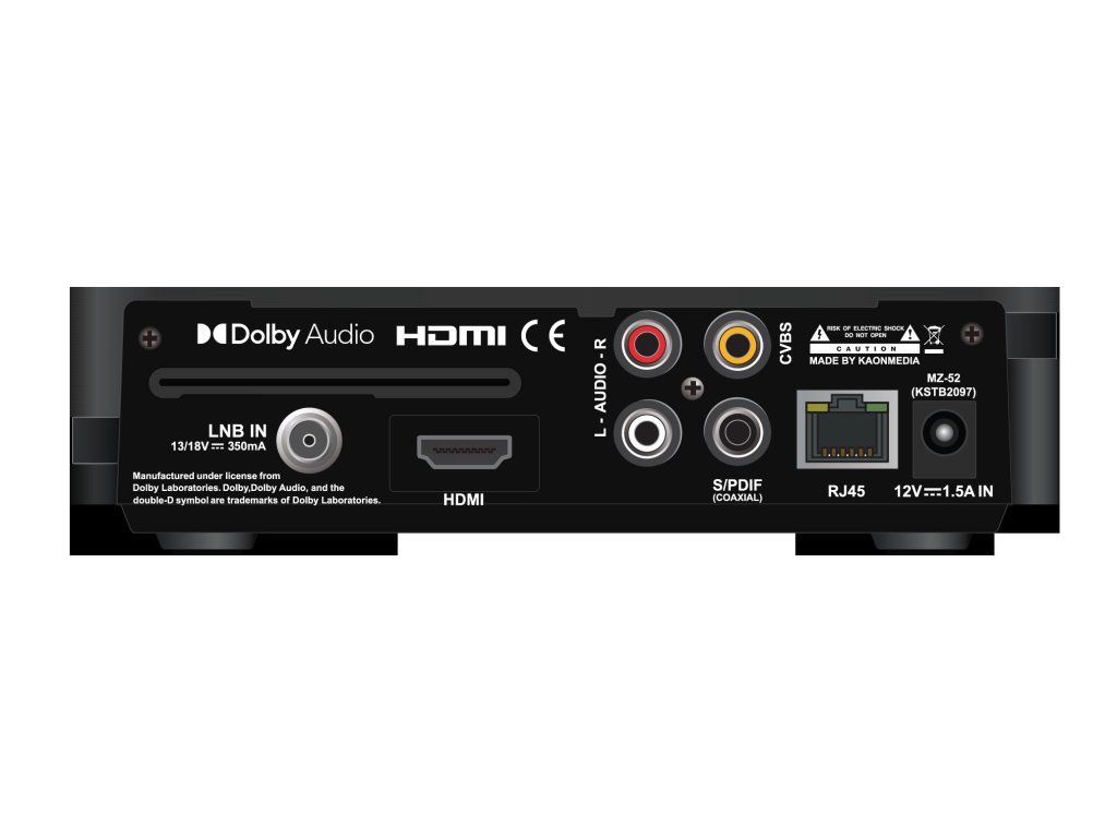 Kaon MZ-52 je HD satelitní příjímač pro příjem programů ve vysokém rozlišení. Přijímač je již vybaven bezkartovým systémem Nagravision pro sledování programů Skylink. Přijímač je vybaven množstvím konektorů a lze jej připojit ke každému typu televizoru. Jednoduché a intuitivní menu včetně průvodce instalací vás provede celým nastavením. Přístroj umožňuje nahrávání TV pořadů na externí USB, které lze také naplánovat pomocí 7 denního TV průvodce EPG.