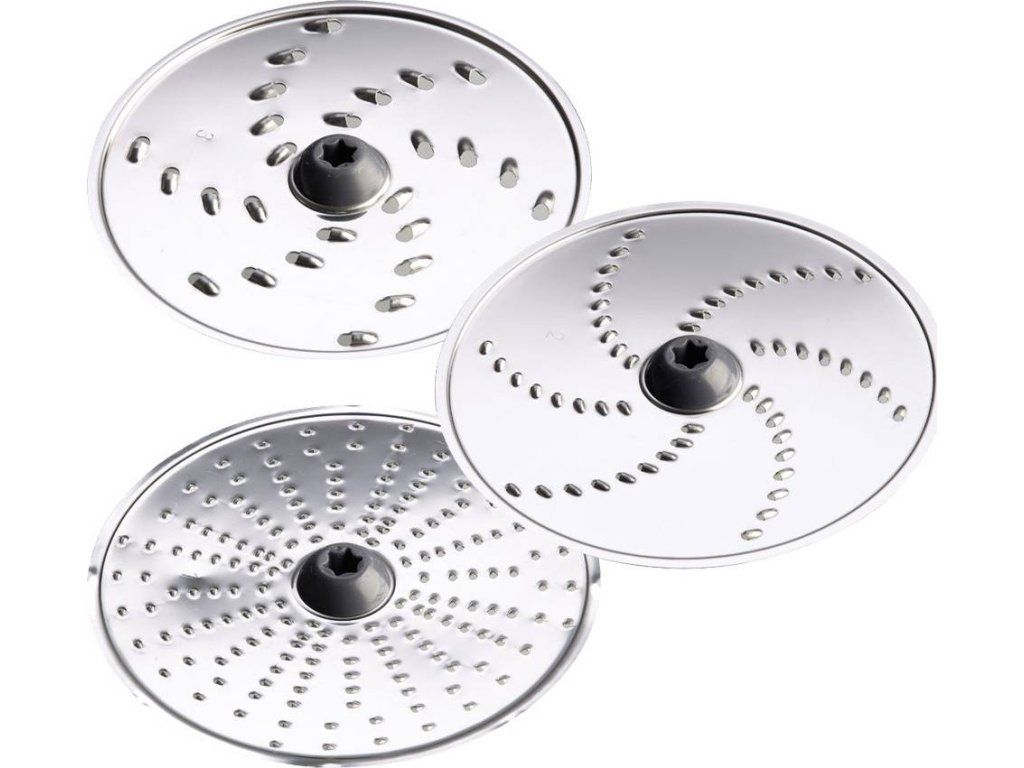 Kovový vysokorýchlostný krájač a strúhač má v príslušenstve 7 krájacíhc diskov z nerezovej ocele, a to štandardný krájací, jemný krájací, extra jemný strúhací, jemný strúhací, hrubý plátkovací, jemný plátkovací a hrubý stúhací. Zaisťuje nepretržitú akciu a menšie plytvanie vďaka svojej inovovanej lopatke na spracovanie odpadu. Naraz môžete pripravovať veľké množstvá.
