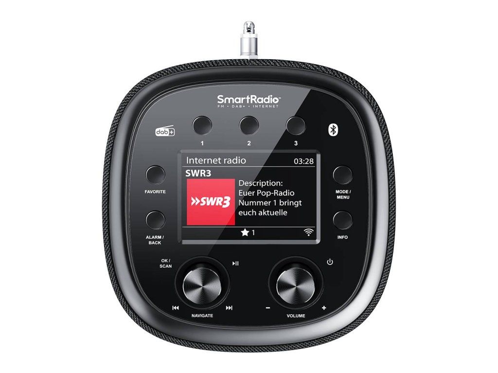 Vďaka rôznym rutinám budíka s rôznymi zdrojmi, časovačom vypnutia a niekoľkými úrovňami jasu displeja je toto šikovné rádio vhodné aj na použitie v spálni. Bez ohľadu na aktuálne vybraný zdroj sa na veľkom farebnom displeji zobrazuje aj aktuálny dátum a čas. Dátum a čas sa môžu synchronizovať buď cez DAB+/FM alebo cez internet.
