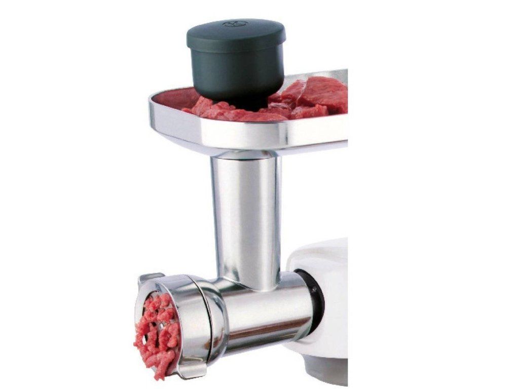 Je vybavený tromi dierovými kotúčmi - diskami - pre rôzne druhy mletia (jemné, stredné a hrubé), dvoma nadstavcami na klóbasy a nadstavcom na kebbe. Tento multifunkčný mlynček Vám umožní rýchle a precízne zomletie ako mäsa, tak i rýb a zeleniny.