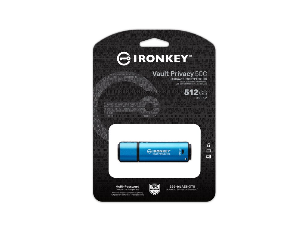 Kingston IronKey™ Vault Privacy řady 50C jsou špičkové disky USB Type-C®, které zajišťují zabezpečení Enterprice-Grade úrovně pomocí 256bitového hardwarového šifrování AES s certifikací FIPS 197 v režimu XTS, včetně zabezpečení proti BadUSB pomocí digitálně podepsaného firmwaru a ochrany proti útoku na heslo hrubou silou. Na VP50 byly provedeny zkoušky prolomení pro zabezpečení na Enterprice-Grade úrovni Vzhledem k tomu, že se jedná o šifrované úložiště pod fyzickou kontrolou uživatele, je řada VP50 při ochraně dat lepší než používání internetu a cloudových služeb. Úložiště Vault Privacy 50 podporuje možnost více hesel (admin, uživatel a jednorázové obnovení) s režimy fráze nebo komplexního přístupového hesla. To zlepšuje možnosti obnovení přístupu k datům, pokud je zapomenuto jedno z hesel. Tradiční režim komplexního hesla umožňuje tvorbu hesel v délce 6–16 znaků s využitím 3 ze 4 znakových sad. Režim přístupového hesla fráze umožňuje využití číselného kódu PIN, věty, seznamu slov nebo zapamatovatelného citátu v délce 10 až 64 znaků. Správce může povolit uživatele a heslo pro jednorázové obnovení nebo resetovat heslo uživatele pro obnovení přístupu k datům. Pro usnadnění zadávání hesla lze aktivovat symbol „oka“, který odkryje zadávané heslo, čímž se omezí překlepy vedoucí k neúspěšným pokusům o přihlášení. Ochrana proti útokům hrubou silou zablokuje uživatelská hesla nebo hesla pro jednorázovou obnovu po 10 neplatných heslech zadaných v řadě a šifrovaně vymaže disk, pokud je heslo správce 10× za sebou zadáno nesprávně. Pro ochranu před potenciálním malwarem na nedůvěryhodných systémech může správce i uživatel nastavit režim pouze pro čtení, aby byl disk chráněn proti zápisu, vestavěná virtuální klávesnice navíc chrání hesla před keyloggery nebo screenloggery. Organizace mohou disky řady VP50 přizpůsobovat a konfigurovat pomocí ID produktu (PID) pro integraci se standardním softwarem pro správu koncových bodů, aby splnily požadavky podnikového IT a požadavky na kybernetickou bezpečnost prostřednictvím programu Kingston Customization Program. Malé a střední podniky mohou používat roli správce pro místní správu svých disků, např. používat správce pro konfiguraci nebo resetování uživatelských hesel zaměstnanců nebo hesel pro jednorázové obnovení, obnovení přístupu k datům na uzamčených discích a splnění zákonů a předpisů pro případy forenzní analýzy. Vault Privacy 50 je rychlý a nabízí dvoukanálový výkon ve všech kapacitách. Disk je vodotěsný s krytím IPX8, kompatibilní s TAA a byl vyroben v USA. *Bezpečnostní certifikace: FIPS 197 - Zabezpečení schválené společností SySS GmbH (Prolomení testováno pro zabezpečení na Enterprise-Grade úrovni) *Voděodolnost: IEC 60529 IPX8 do 120cm ( platí s nasazeným krytem. Před použitím musí být výrobek čistý a suchý) *Rozhraní: USB 3.2 Gen1 typ C *Rychlost čtení: 310 MB/s *Rychlost zápisu: 250MB/s *Operační teplota: 0°C to 50°C *Skladovací teplota: -20°C to 85°C *Rozměry: 77.9 mm x 21.9 mm x 12.0 mm *Váha: 15g *Kompatibilita: Windows 11, 10, macOS 11.x – 14.x *Záruka: 5 let Pro podrobnější informace k šifrování nebo technickou radu se obraťte na Kingston.comDodatočné parametre