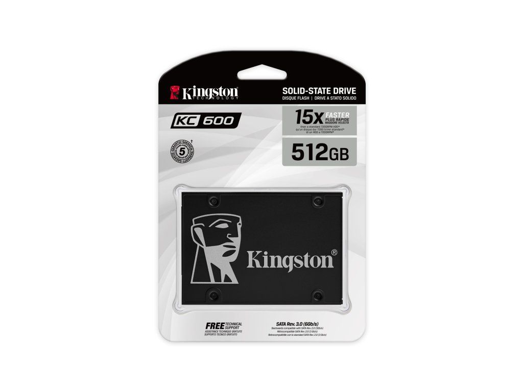Spolehlivý SSD, formát 2,5“, rozhraní SATA 6 Gb/s, kapacita 512 GB, rychlost čtení/zápis až 550/520 MB/s, maximální rychlost náhodného čtení/zápisu 4K až 90 000/80 000 IOPS, sada ochranných prvků, odolný proti otřesům a nárazům. Model: KC600 Kingston bundle Kapacita: 512 GB Typ disku: SSD 2,5'' Rozhraní: SATA III Přenosová rychlost: 6 Gb/s Záruka: 5 let Další vlastnosti: *XTS-AES 256-bit Encryption, TCG Opal, eDrive *3D TLC NAND technology *Rychlost čtení až 550MB/s *Rychlost zápisu až 520MB/sDodatočné parametre