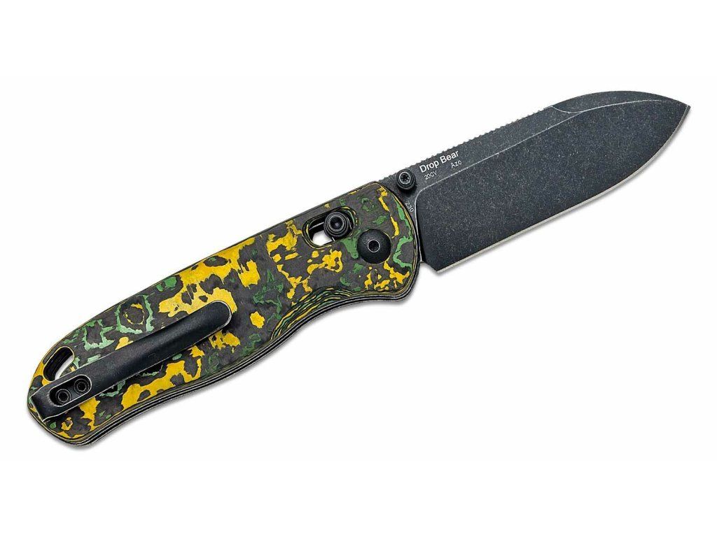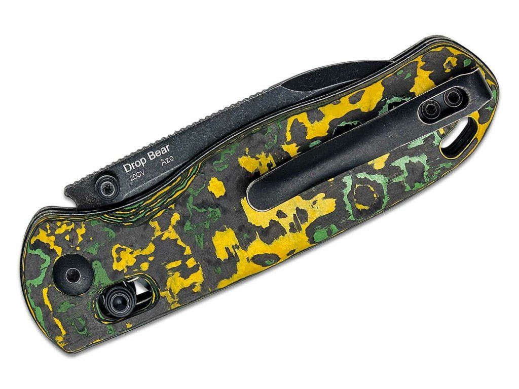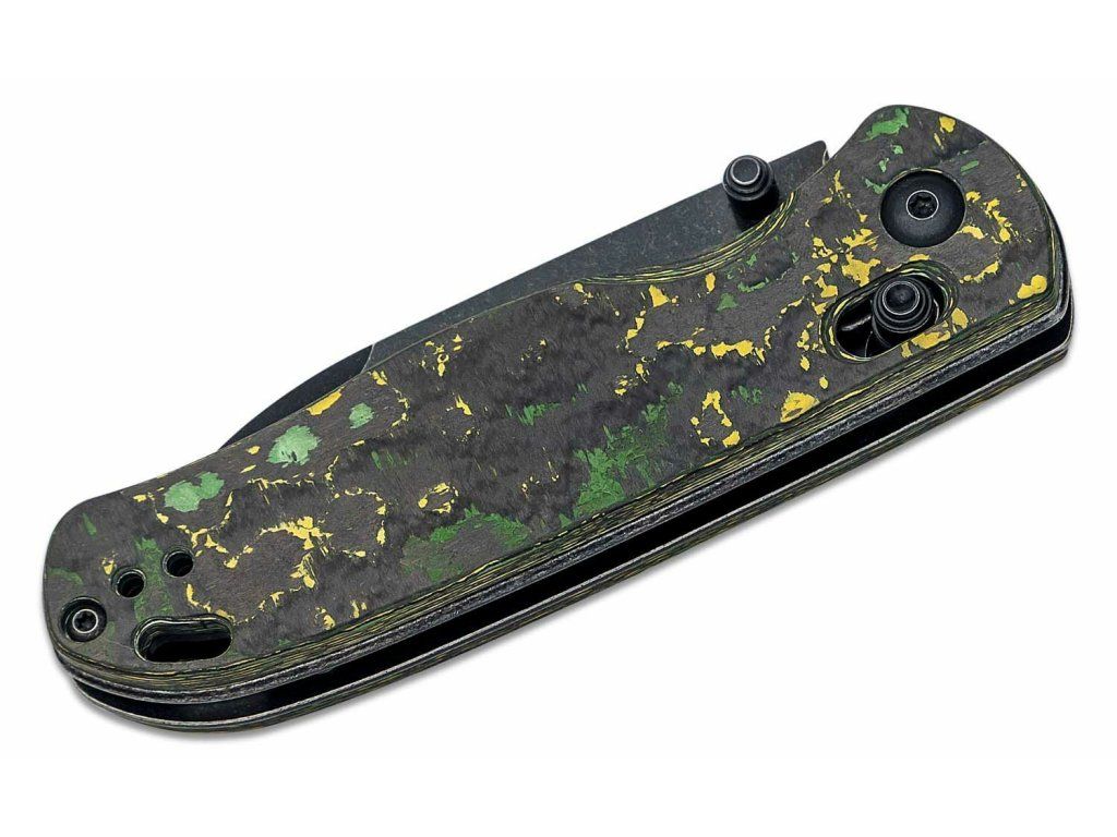 Čepeľ vyrobená z prémiovej ocele CPM-20CV s čiernym Stonewash povrchom, sa otvára kolíkom na čepeli a v otvorenej pozícii ju drží poistka Clutch lock, ktorá funguje podobne ako systém AXIS v nožoch Benchmade.