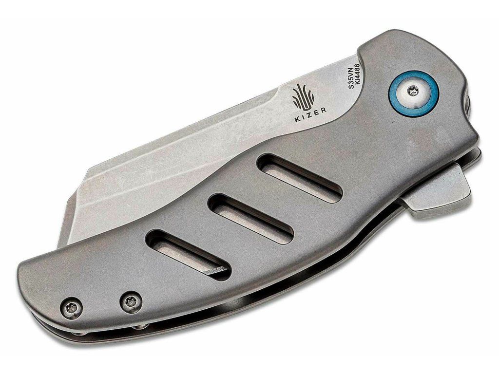 Vreckový zatvárací nôž Kizer C01c Sheepdog Gray Titanium navrhol Chris Conoway zo Sheepdog Knives, vhodný na každodenné (EDC) nosenie.