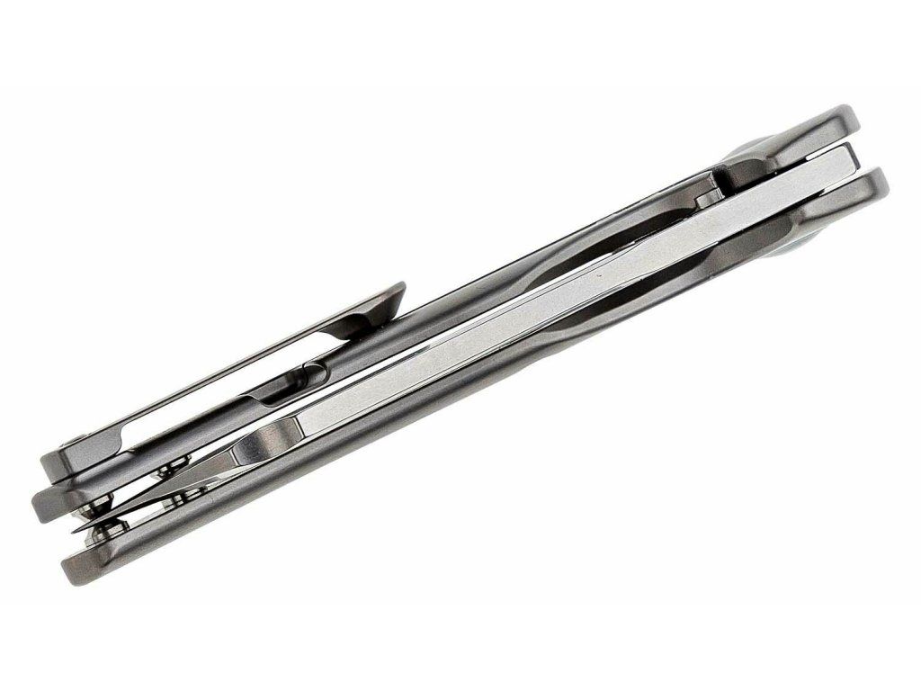 Rukoväť je z CNC frézovaného titánu s modrými prvkami, s pohodlným úchopom. So sponou na vrecká.