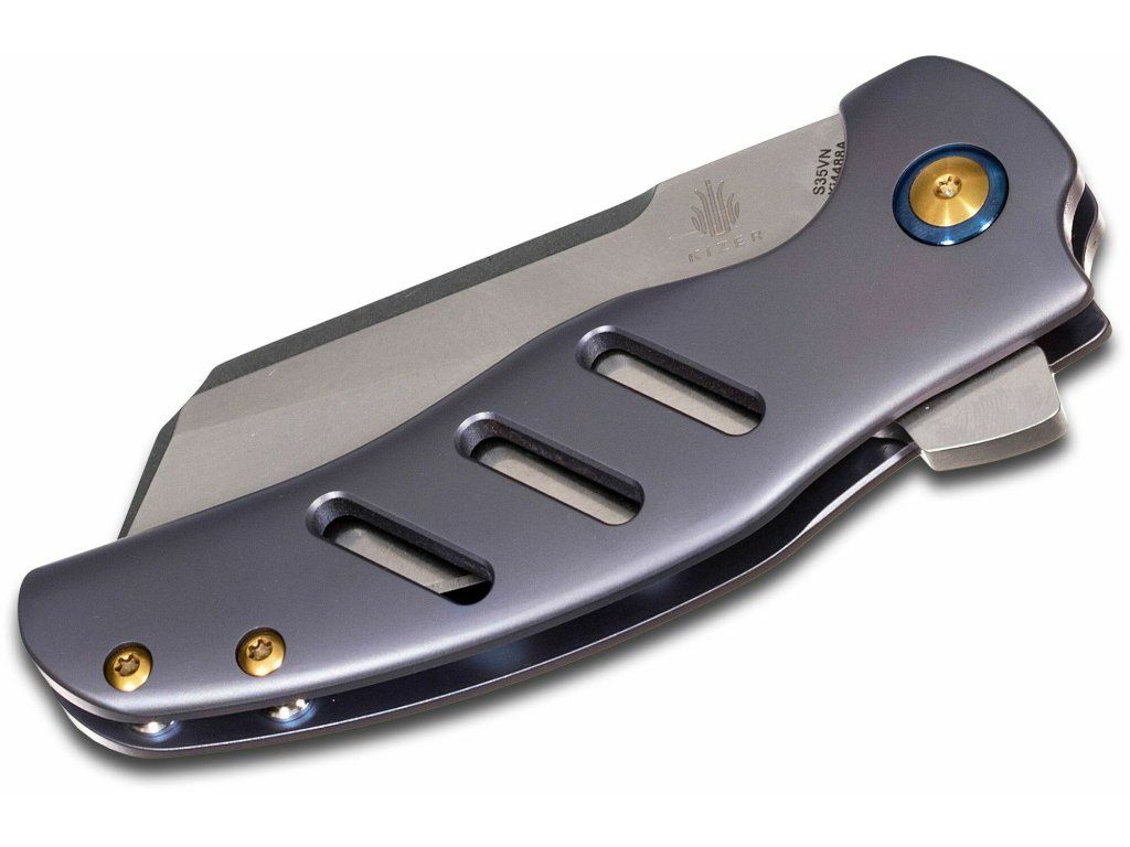 Vreckový zatvárací nôž Kizer C01c Sheepdog Blue Titanium navrhol Chris Conoway zo Sheepdog Knives, vhodný na každodenné (EDC) nosenie.