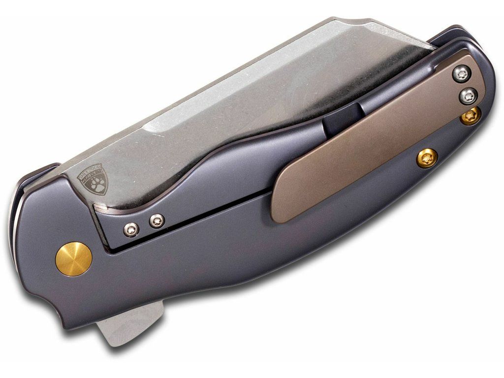 Rukoväť je z CNC frézovaného titánu modrej farby, s pohodlným úchopom. So sponou na vrecká.