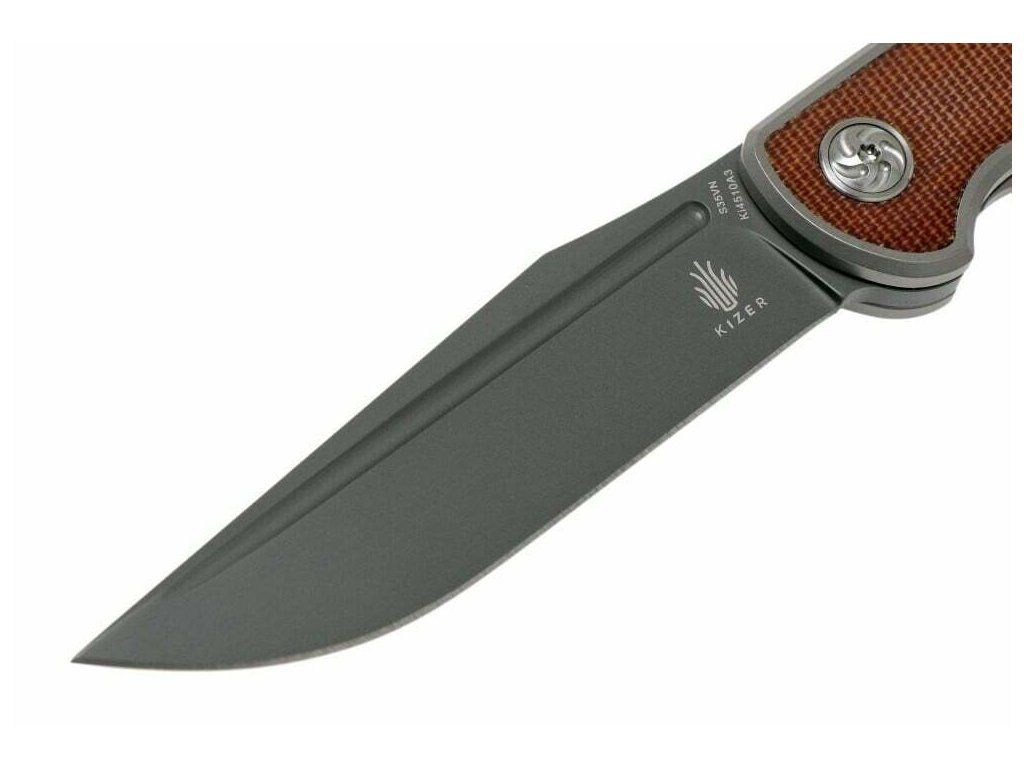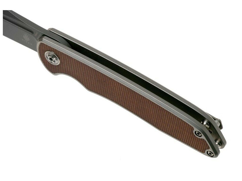 Kizer Ki4510A3 Matanzas vreckový nôž 8,7 cm, šedá, hnedá, titán, Micarta