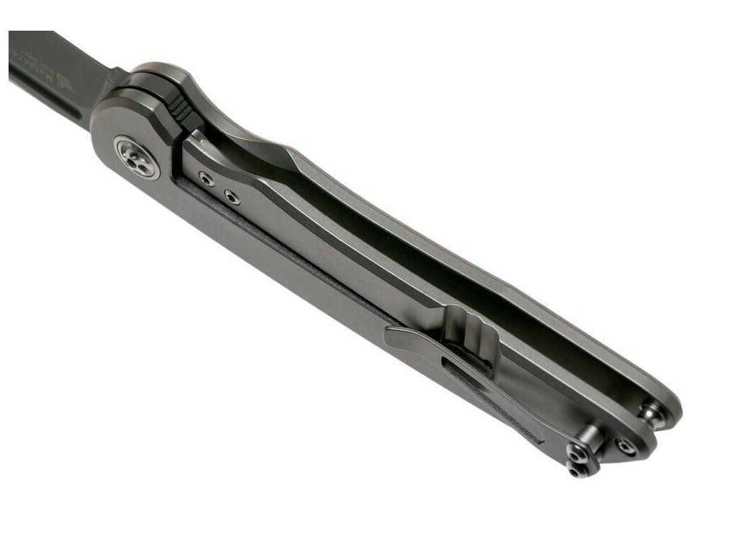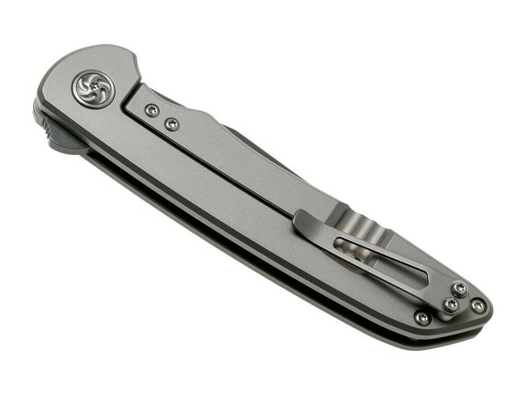Rukoväť je z titánu s vložkou z materiálu Micarta hnedej farby, So sponou na vrecká.