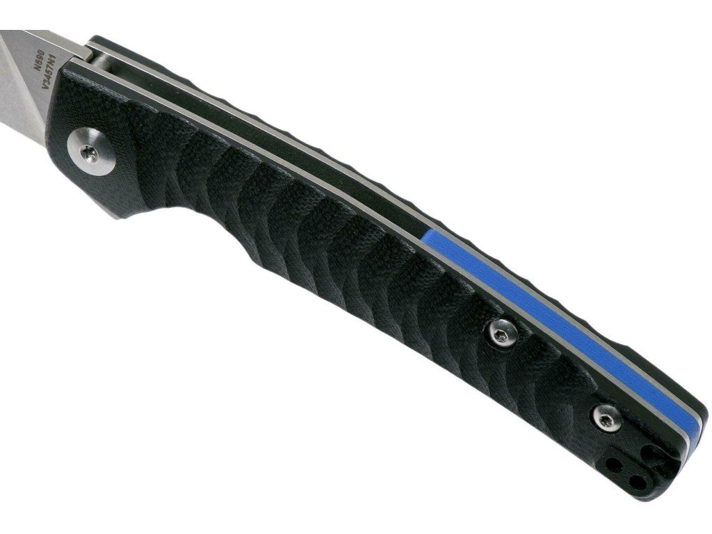 S čepeľou s hladkou hranou z ocele N690 s povrchom Stonewash, otvára sa guľôčkovými ložiskami cez vyklápač Flipper a zaisťuje ju poistka Linerlock.