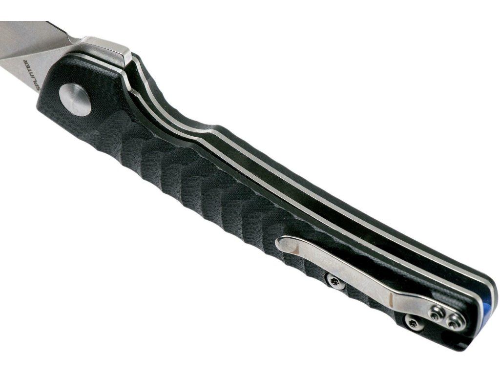 Rukoväť s 3D textúrou je vyrobená z materiálu G10 čiernej farby. Na konci rukoväte sa nachádza otvor na šnúrku. Nôž je vybavený sponou pre nosenie vo vrecku.