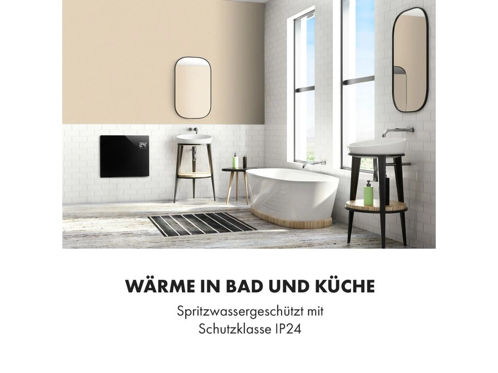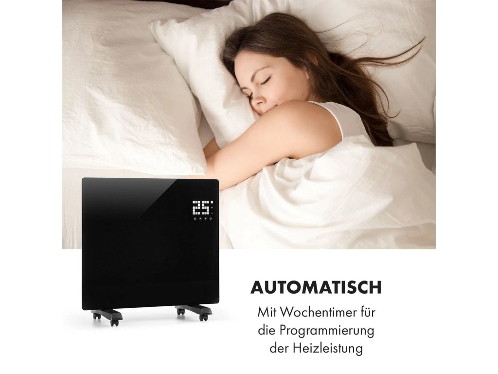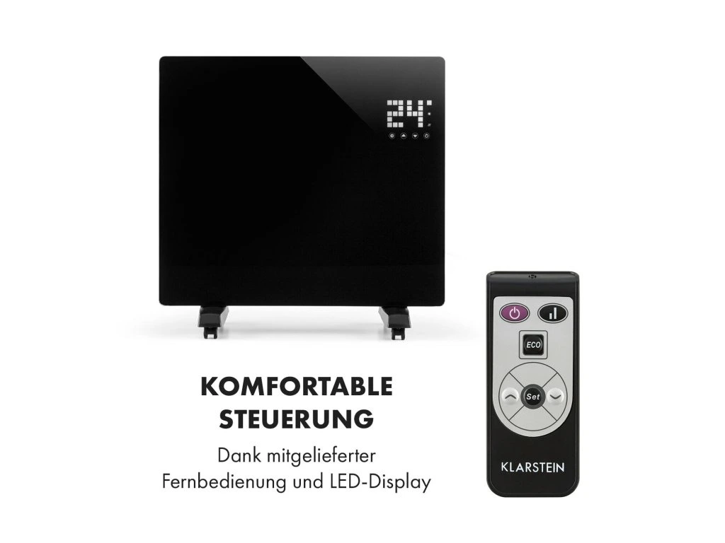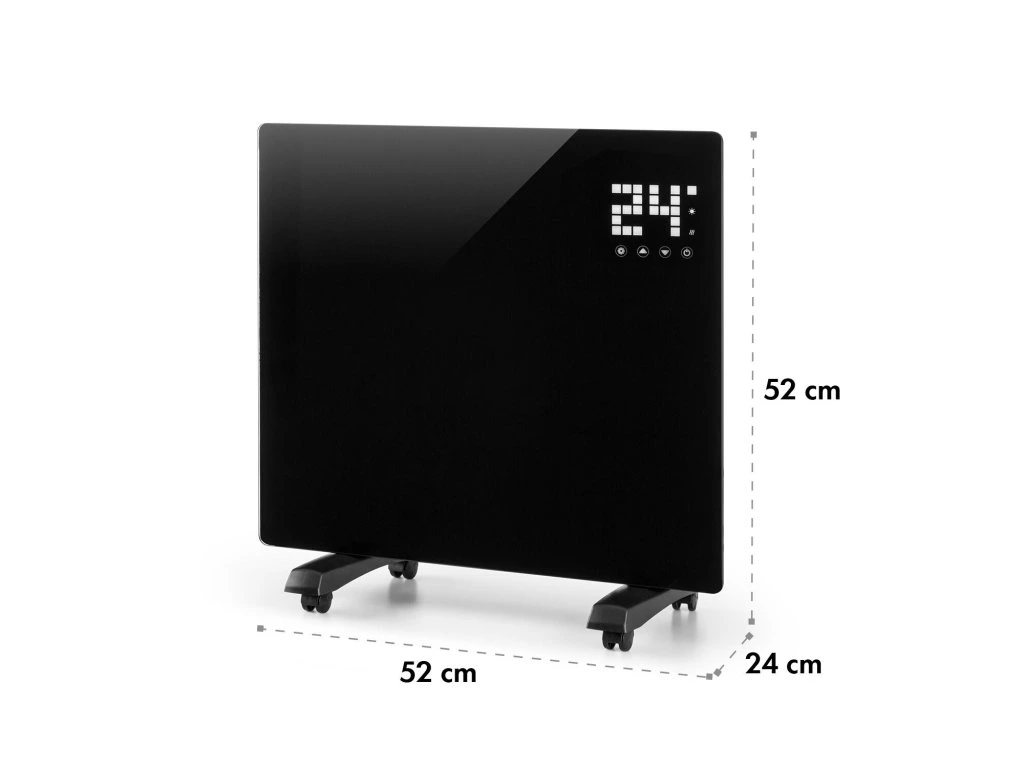 Čierna elegancia prináša príjemné teplo a rovnako príjemné pocity aj vtedy, keď máte na sebe papuče a pyžamo: konvektor Klarstein Bornholm Single zabezpečuje rovnomerné vyhrievanie a rozmiestňovanie tepla v miestnostiach s veľkosťou do 25 m2.Dva nastaviteľné výhrevné stupne s max. výkonom 1000 W vyhrejú izby do 45 °C. Termostat slúži na presnú kontrolu teploty. Režim ECO znižuje spotrebu elektrickej energie na minimum: a to šetrí životné prostredie aj peňaženku. Vďaka časovaču sa prístroj vypne/zapne v presne zadanom čase. Konvexný sklený panel ohrievača je chránený pred striekajúcou vodou, čiže ho môžete používať aj vo vlhkých miestnostiach. Kolieska slúžia na rýchle presúvanie ohrievača v byte.Na dotykovom displeji v pravom hornom rohu skleneného panela ľahko nastavíte požadované funkcie ohrievača. Displej taktiež zobrazuje aj izbovú teplotu. Diaľkový ovládač slúži na pohodlné ovládanie ohrievača, keď ste pohodlne zababušený/á v kresle.Konvekčný ohrievač Klarstein Bornholm Single zvyšuje hodnotu každej izby a zabezpečuje príjemnú teplotu - celkom nezávisle od vonkajšieho počasia. Vďaka časovaču a povrchu chráneného pred striekajúcou vodou si už nikto nemusí umývať zuby v studenej kúpeľni!Dostupné farby: čierna (10031981), biela (10031982)Najväčšie výhody: