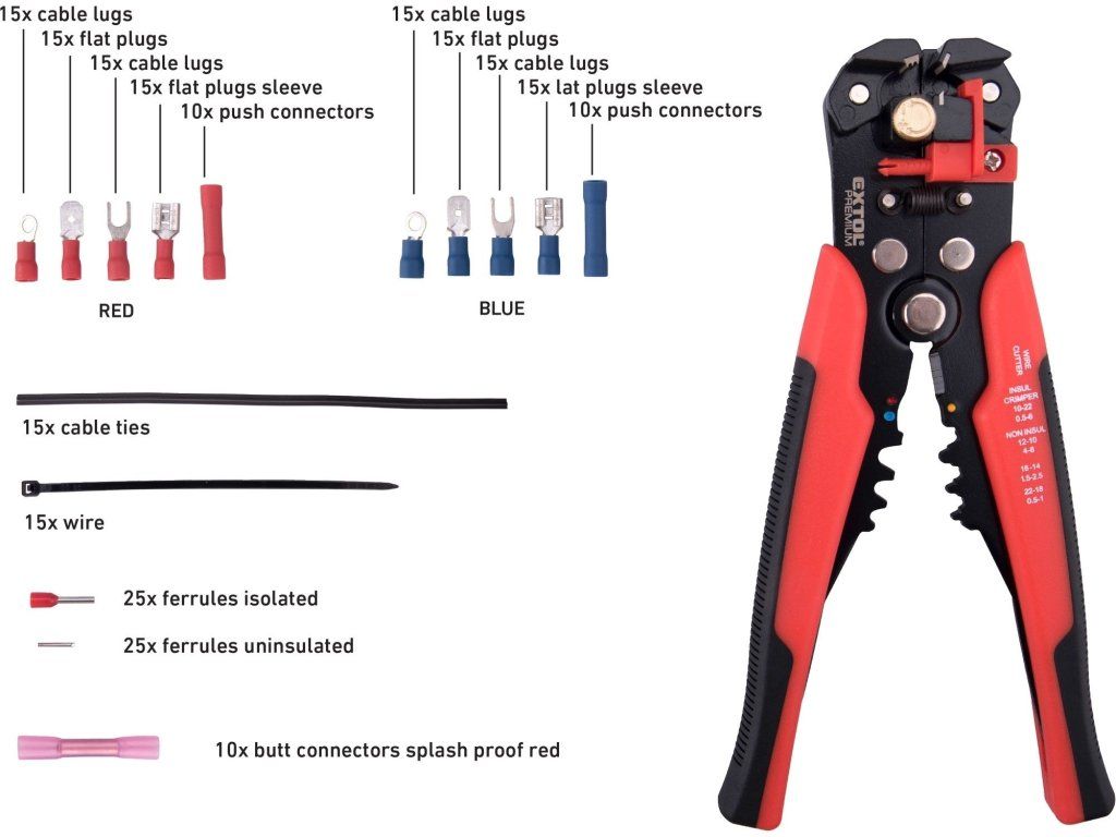 Kleště odizolovací/krimpovací a koncovky, sada 231ks EXTOL-PREMIUM