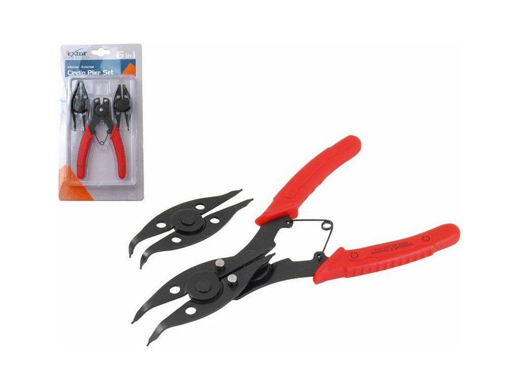 kleště seegerové HEAVY DUTY 6 v 1, vyměnitelné koncovky: 2x přímé, 1x zahnuté pod úhlem 45° a 90°, CrMoV, EXTOL PREMIUM