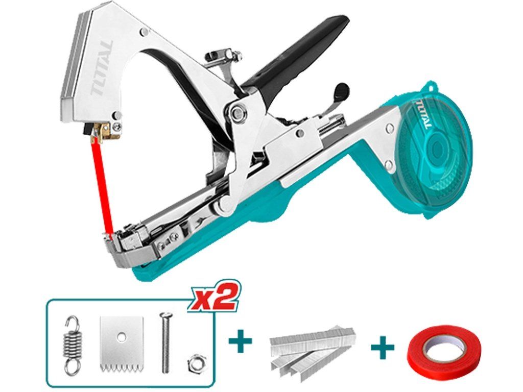 Kleště na vázání rostlin, Velikost: 32cm, Velikost pásky: W11mmxL25~30M Velikost spony: C7 mm x D4 mm x W0,55 mm, Ovládání jednou rukou Rozevření páskového kruhu lze upravit, Použitelné na všechny druhy větví, plodiny vinné révy, jako jsou hrozny, rajčata, okurky, meloun, lilek. S 1 kusem strečové zahradní kravatové pásky W11mmxL25m, S 200 sponami 7mmxL4mmxW0,55mm. S 1 sadou náhradních dílů včetně: 1 ks čepele, 1 ks pružiny, 1 ks šroubu, 1 ks maticeTechnické parametry: