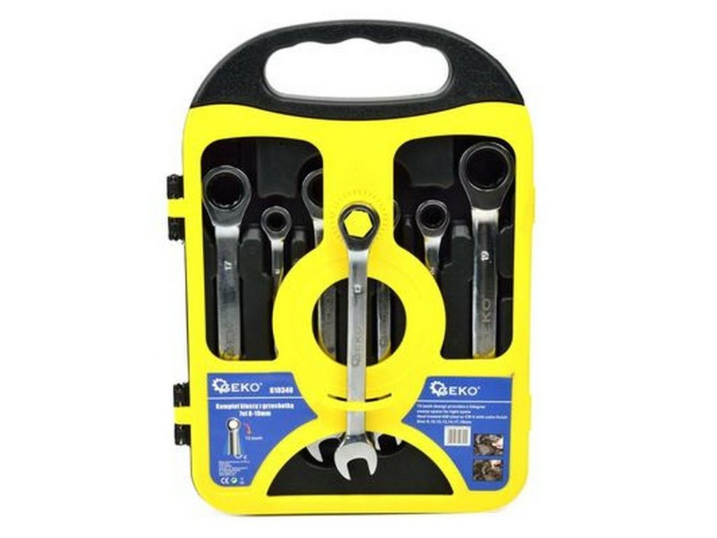 Klíče ráčnové očkoploché, sada 7ks, 8-19mm, plast. držák GEKO