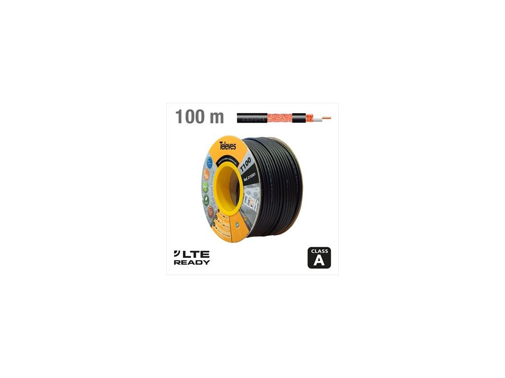 oaxiálny kábel Televes T100 215501 6,6mm Cu/Cu, 100m, čierny, cievka, vonkajší