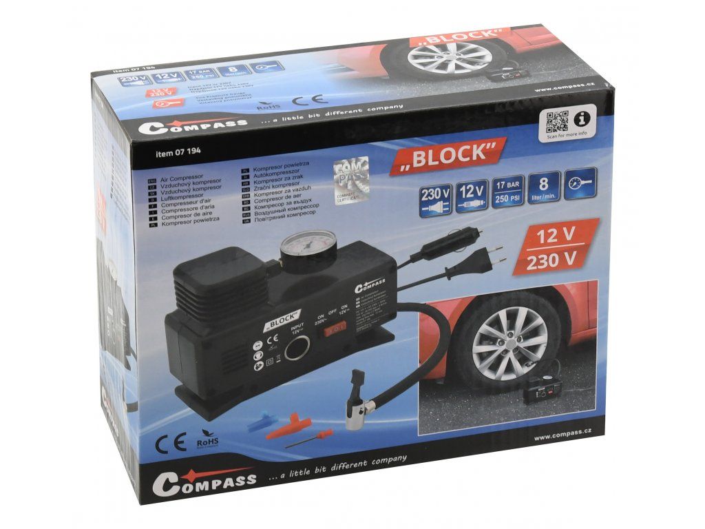 Kompresor je vhodný na hustenie pneumatík osobných automobilov, motocyklov alebo bicyklov. Súčasťou balenia sú ďalšie adaptéry na rôzne aplikácie (hustenie lôpt, matracov, bazénov atď.).