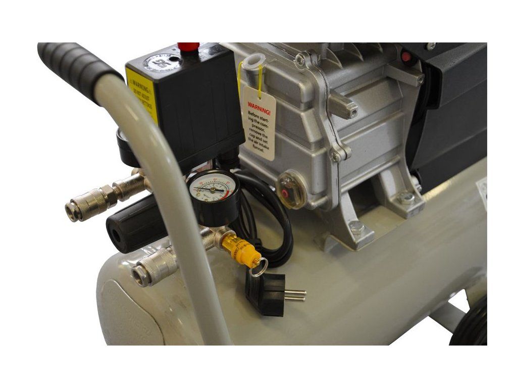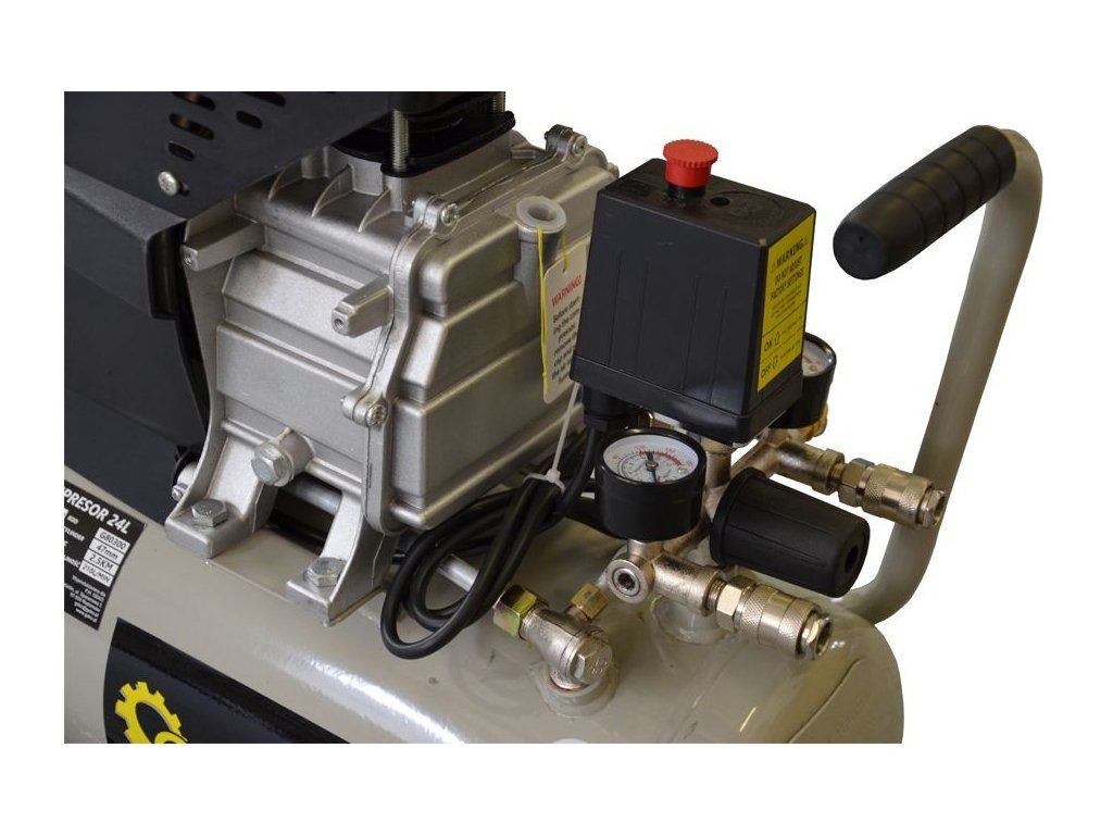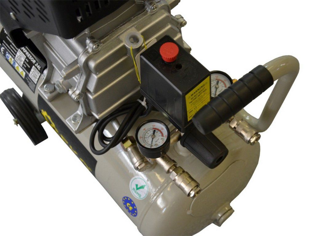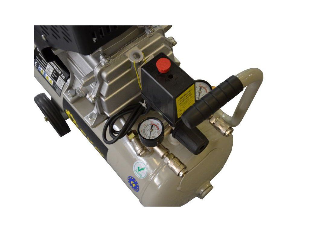 Elektrický vzduchový kompresor je určen pro výrobu stlačeného vzduchu o maximálním tlaku 0,8 MPa (8 bar) všude tam, kde je stlačeného vzduchu zapotřebí: k pohonu pneumatického nářadí, k nanášení barev, čištění vzduchem, saponáty apod., k huštění pneumatik aj. Konstrukční řešení umožňující mazání olejem zaručuje vyšší výkonnost a delší životnost stroje.- Objem nádrže 24L
