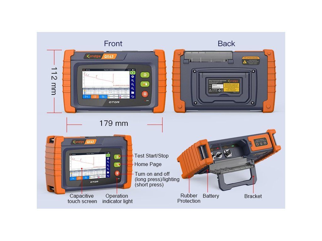 KOMSHINE QX43-S1 – SM Monster OTDR Vlastnosti *OTDR: testování a měření optických tras (26/24 dB, 1310/1550 nm) *VFL: vizuální kontrola přerušení a poruch vláken *OPM: integrovaný měřič optického výkonu *SLS: stabilní zdroj světla pro přesná měření Hlavní přednosti *Kombinované řešení: čtyři funkce v jednom přístroji *Snadné použití: vhodné pro instalace i následnou údržbu sítí *Referenční měření: možnost uložit parametry trasy a kdykoli je znovu porovnat *Kompaktní provedení: lehké zařízení vhodné i pro přenos v terénu *Cenová dostupnost: výhodný poměr ceny a výkonuDodatočné parametre