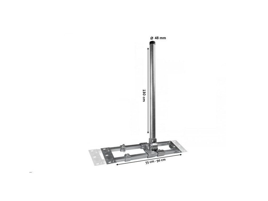 Profesionálny držiak antény s nastaviteľnou dĺžkou medzi krokvami od 55 cm do 90 cm s výškou 130 cm a priemerom stožiara 48 mm. Nastavenie uhla 0 - 80°. Povrchová úprava žiarovým zinkom.