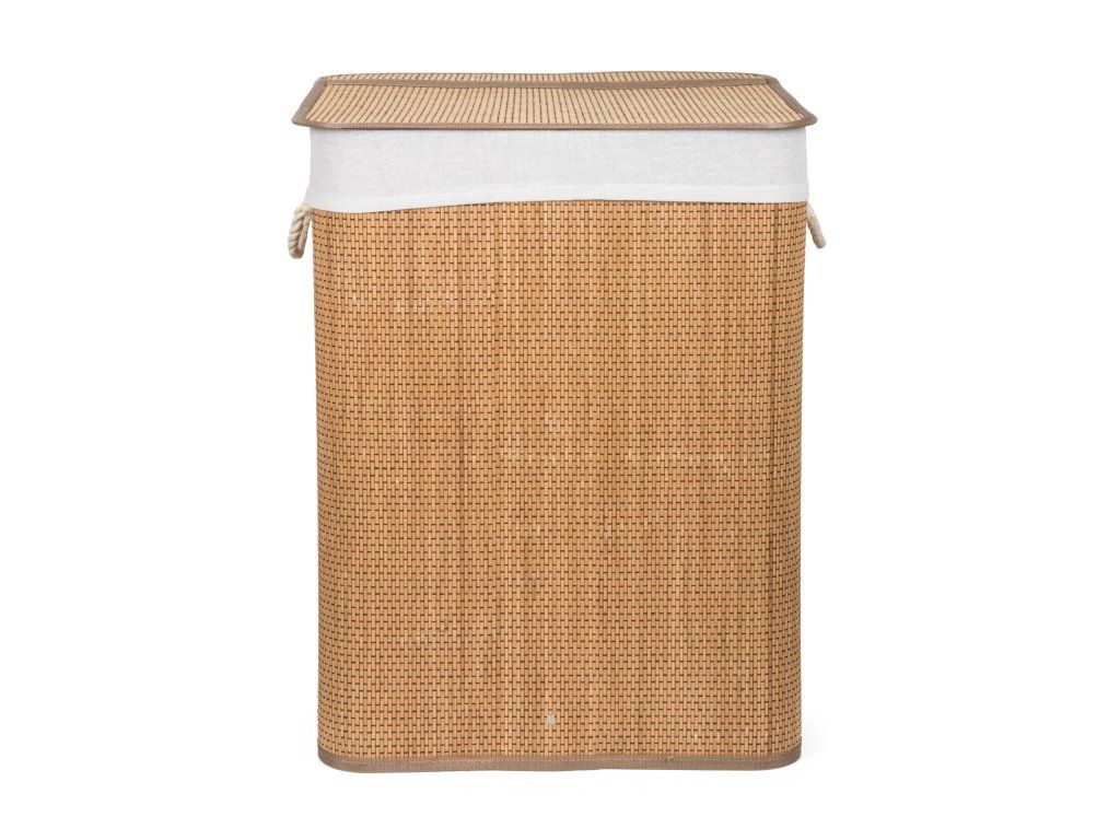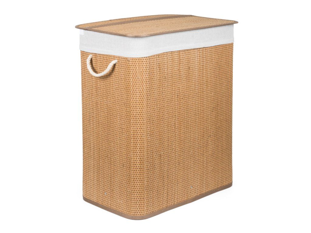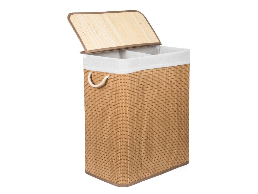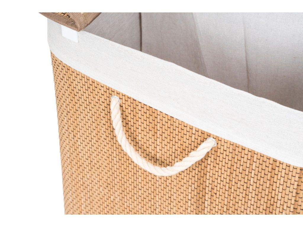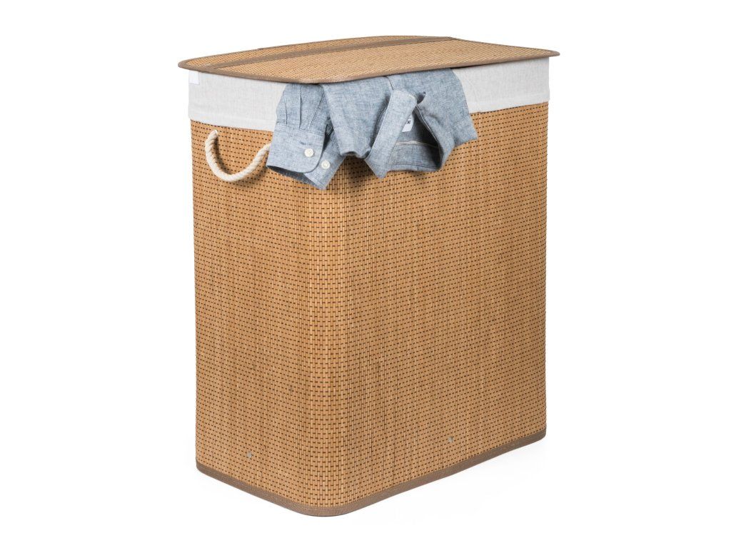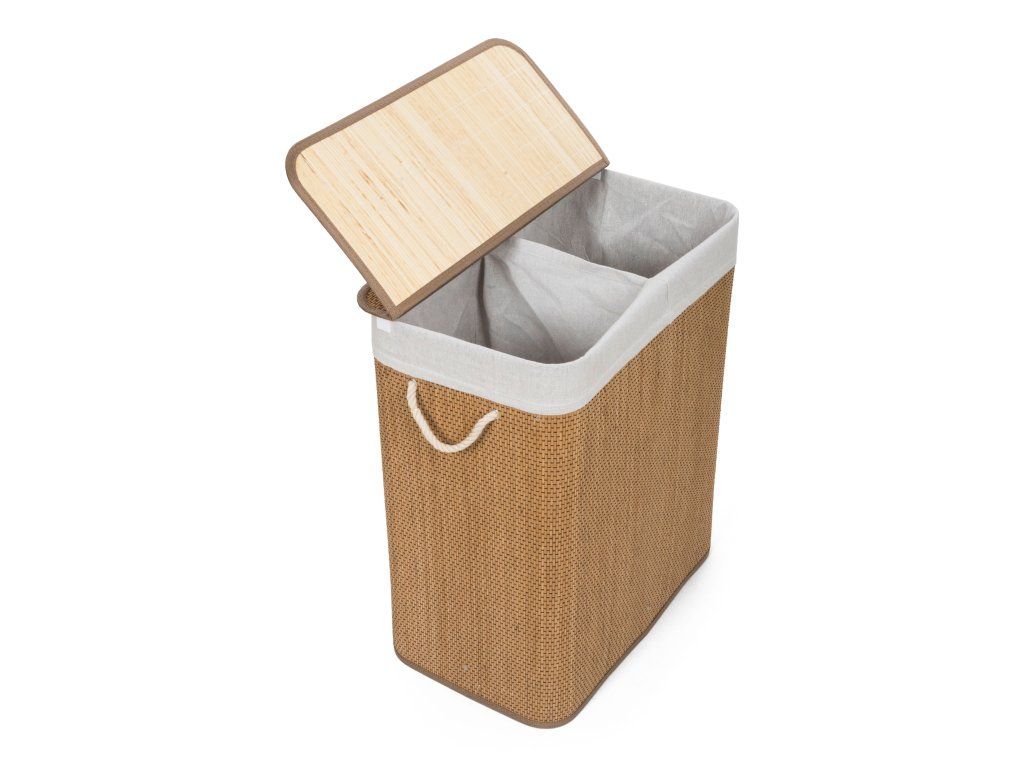 Bambusový kôš G21 s pevným vekom má prateľnú látkovú vložku, rozdelenú na dva samostatné oddiely. Špinavú bielizeň tak môžete triediť už pred praním a umiestniť zvlášť kúsky podľa materiálu alebo farby.