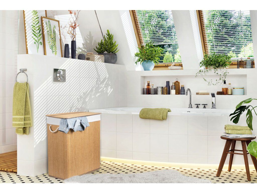 Bambus je prekvapivo ľahký, takže kôš môžete ľahko prenášať. Zároveň je ale dostatočne pevný, takže unesie aj ťažkú ??záťaž, keď je naplnený bielizňou. Jednou z výborných vlastností bambusového dreva je navyše jeho veľká odolnosť voči vlhkosti. Pokiaľ teda hľadáte bielizňový kôš, ktorý nepodľahne vlhkému prostrediu kúpeľne, je pre vás bambusový kôš s objemom 105 l na špinavú bielizeň jasnou voľbou. Jeho ďalšou prednosťou je prirodzená odolnosť voči baktériám a plesniam, čo je pri určení koša na špinavú bielizeň veľmi výhodné.