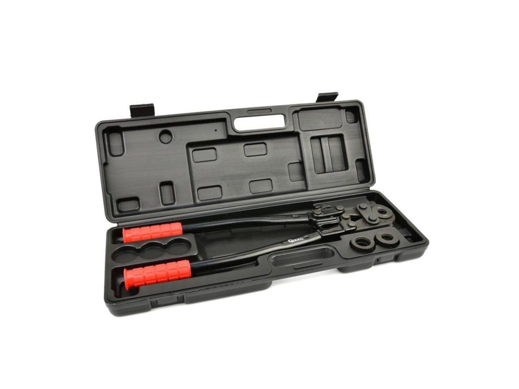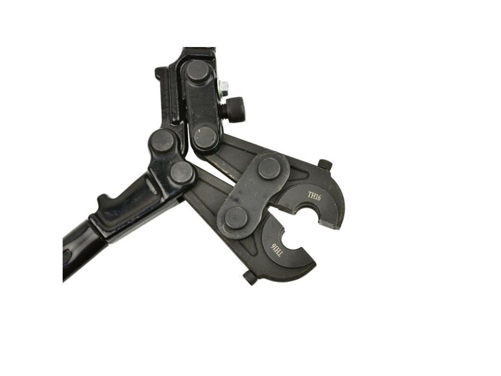 Krimpovací nástroj pro lisování spojek PEX-AL-PEX a PERT-AL-PERT. Krimpovací nástroj je určen pro lisování spojek trubek ve vícevrstvých instalačních systémech. Vyměnitelné čelisti vám umožňují pracovat v celém rozsahu průměrů trubek od 16 mm do 26 mm.Technické parametry: