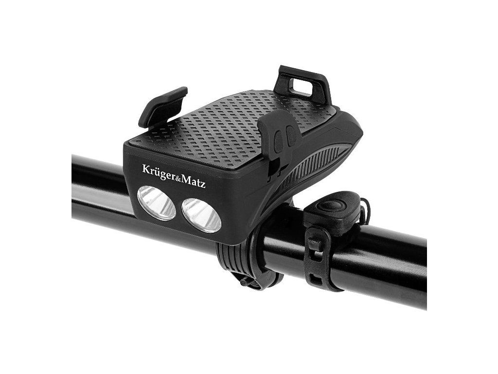 KRUGER &MATZ XT50 Držiak telefónu na bicykel 4v1 so svietidlom a powerbankou