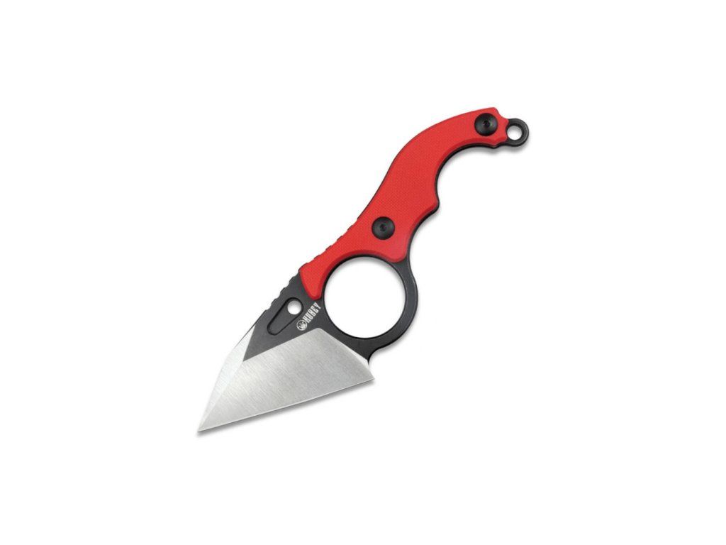 S krátkou geometricky premyslenou rukoväťou z odolného materiálu G10 červenej farby, s textúrou pre pohodlný úchop. S otvorom na šnúrku.
