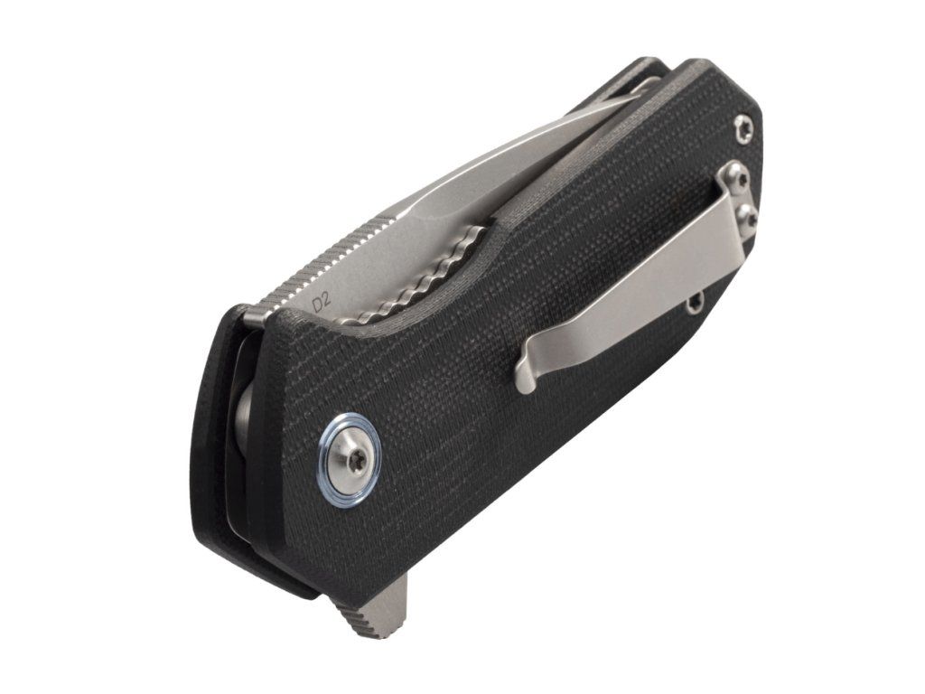 Má čepeľ s hladkou hranou typu Drop Point z z nástrojovej ocele D2 s povrchom Sandblast, otvára sa vyklápačom Flipper a zaisťuje ju poistka Linerlock. Otváranie a zatváranie uľahčujú keramické guľôčkové ložiská.