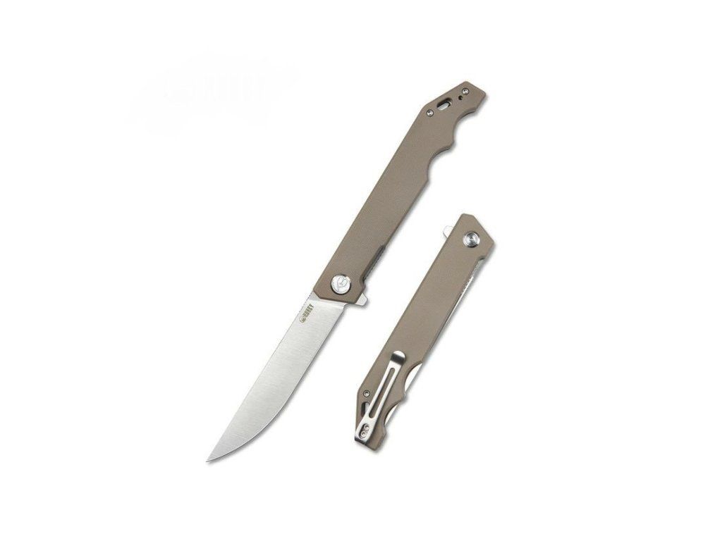 Štíhly zatvárací vreckový nôž Kubey KU253E Pylades Tan na univerzálne použitie, aj na krájanie potravín a na každodenné (EDC) nosenie.