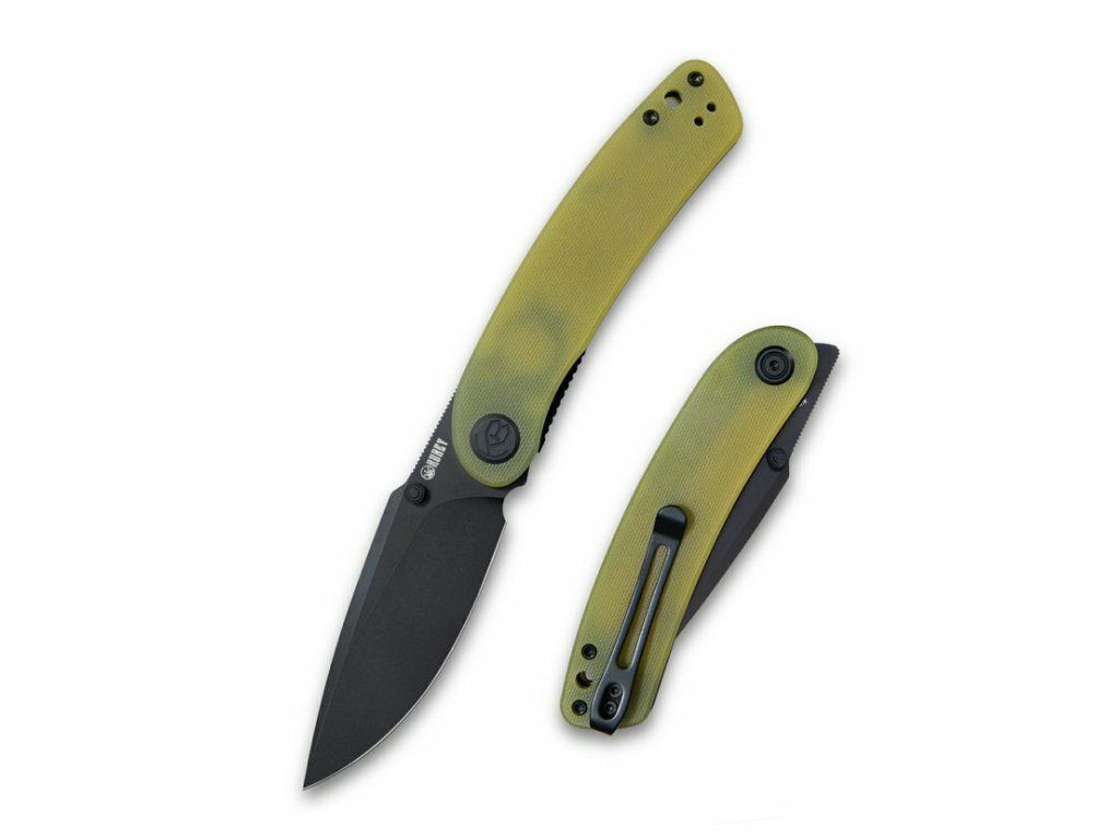 Tvarovaná rukoväť je vyrobená z odolného G10 priehľadnej žltej farby, s textúrovaným povrchom pre pohodlný úchop. S dierkou na šnúrku a sponou na vrecká.
