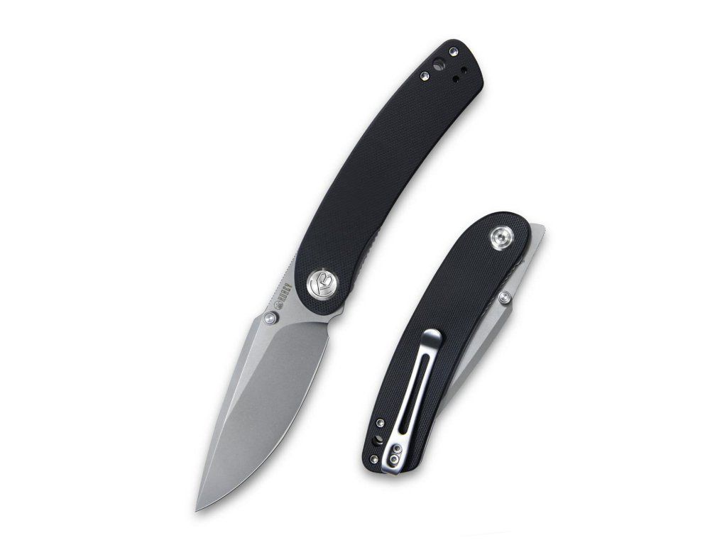 Tvarovaná rukoväť je vyrobená z odolného G10 čiernej farby, s textúrovaným povrchom pre pohodlný úchop. S dierkou na šnúrku a sponou na vrecká.