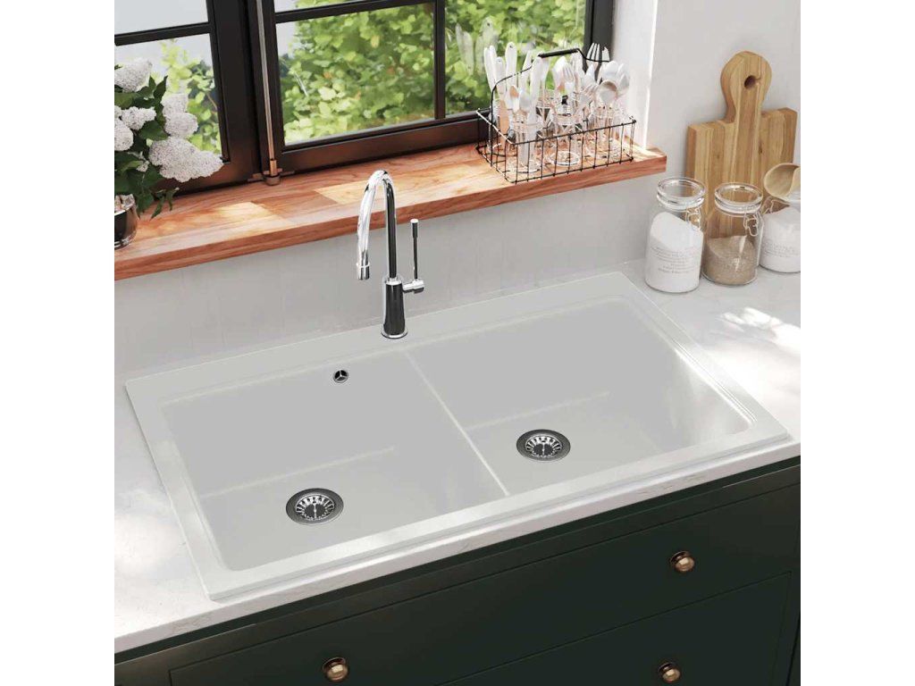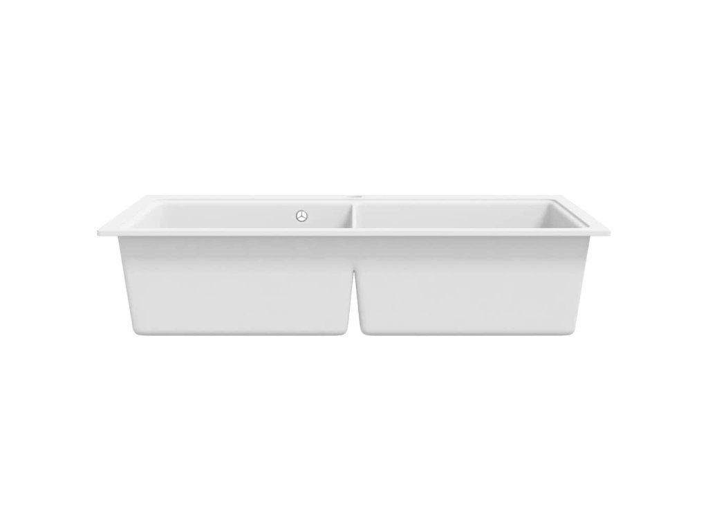 Kuchynský drez s dvomi nádržkami zo žuly biely